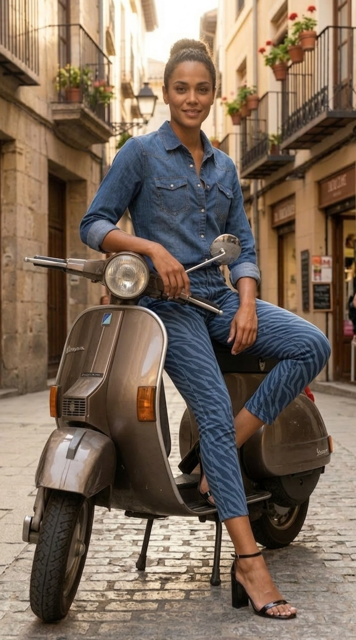 Pantalón tobillero, vaquero, pitillo y elástico.