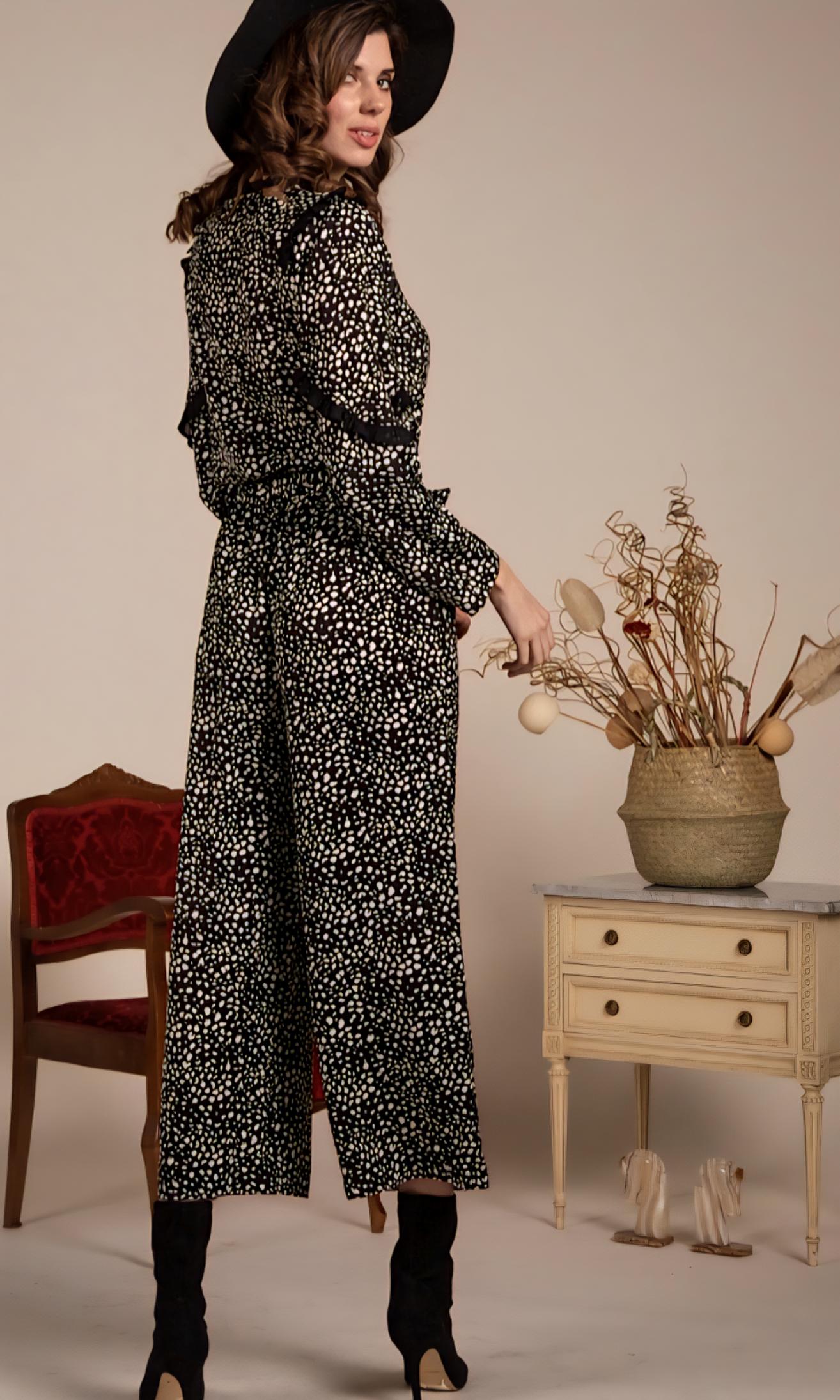 Estampación de motas blancas sobre fondo negro.