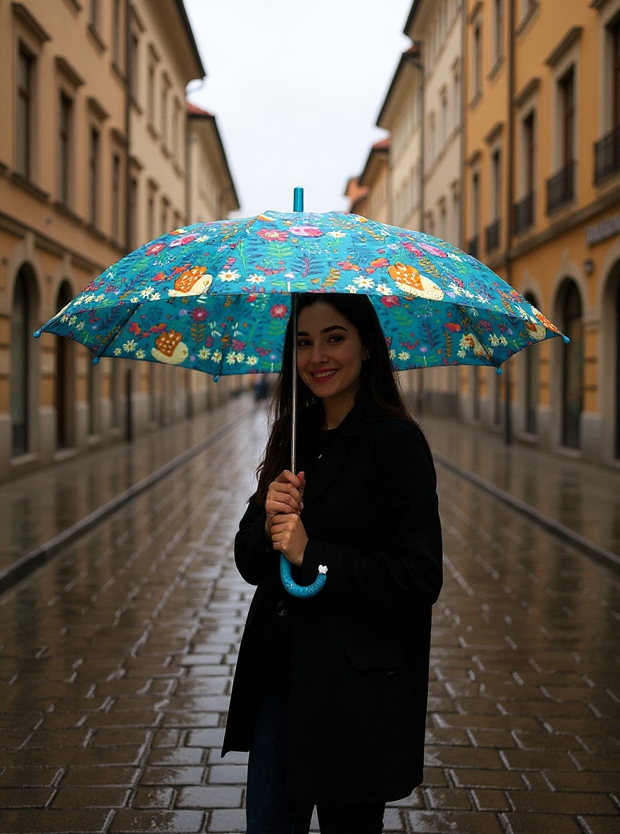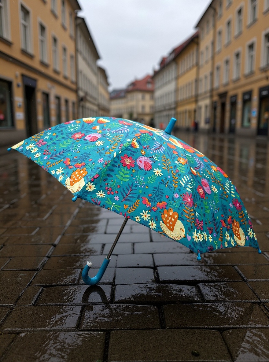 Estampación de pájaros y flores multicolor sobre fondo azul petroleo.