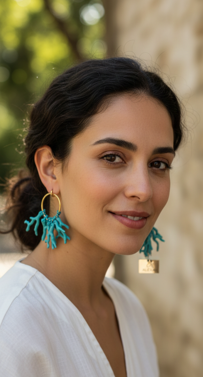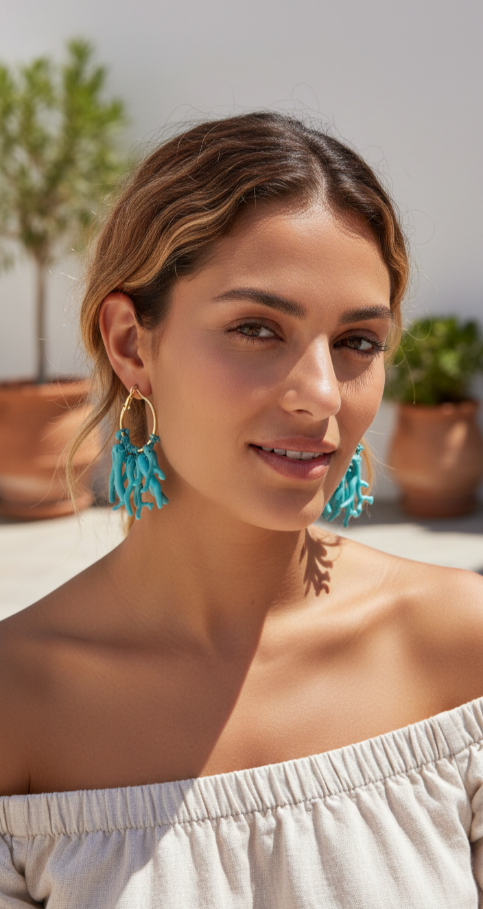 Pendientes de aro con colgantes de corales turquesa.
