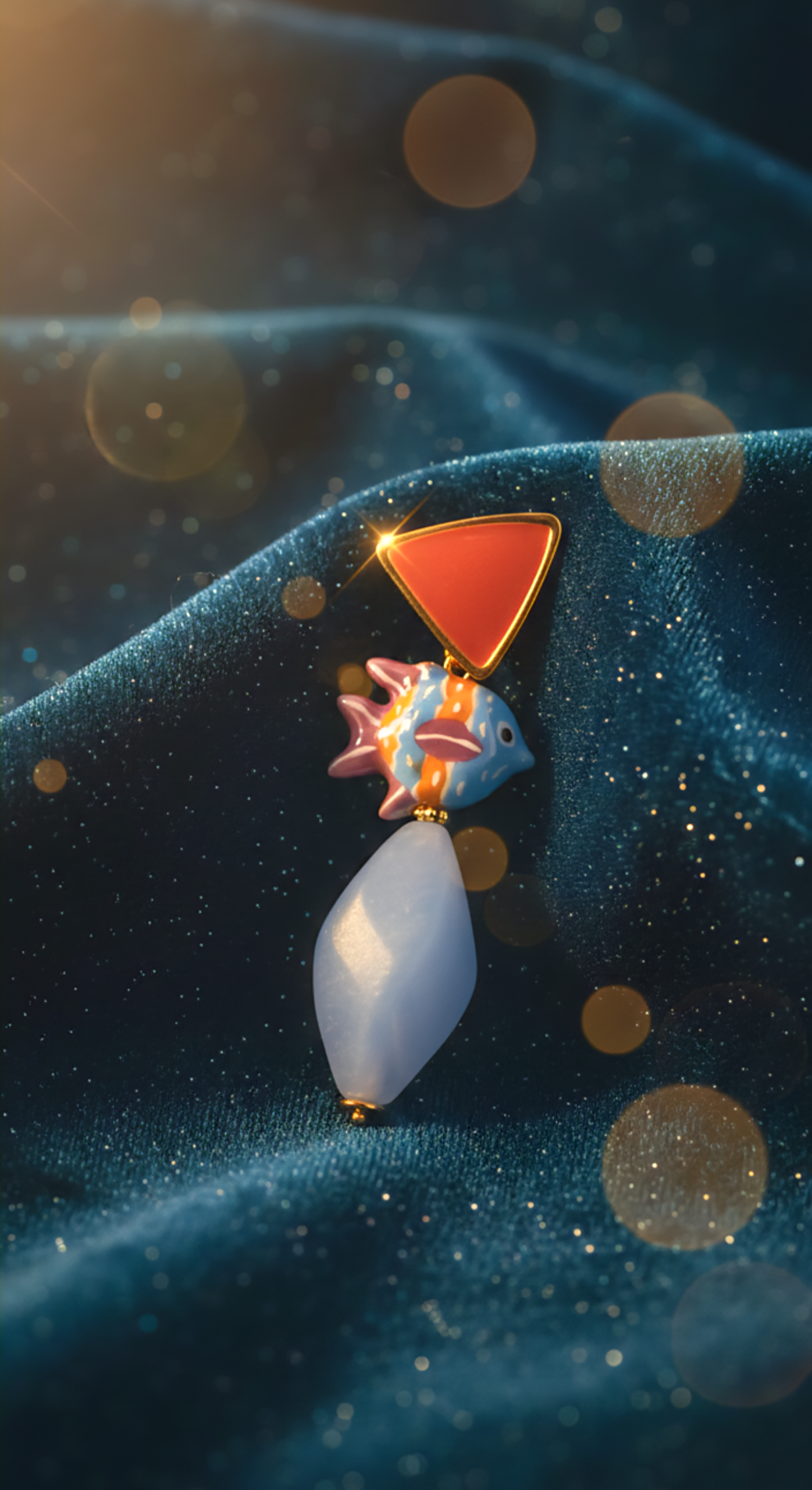 Pendientes largos de pez multicolor.