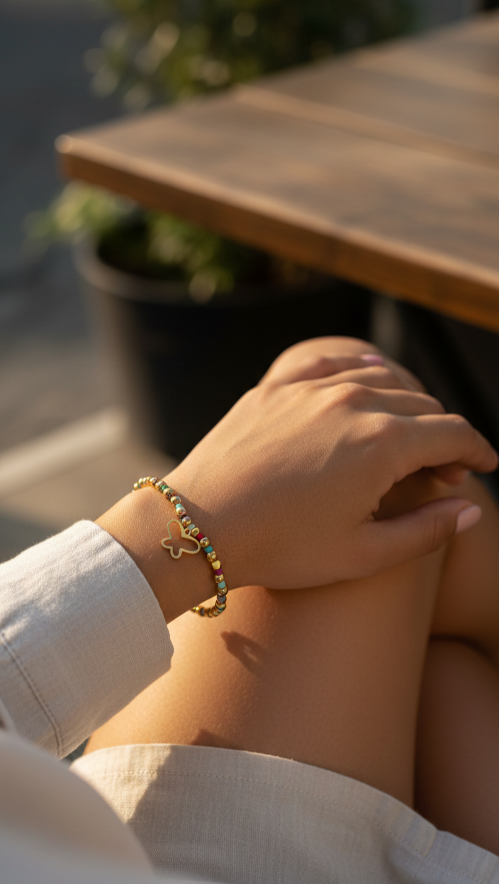 Pulsera multicolor con Charm de mariposa.