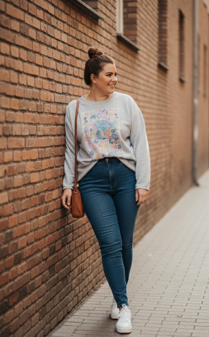 Sudadera de felpa primaveral en color gris con ligero toque plata.