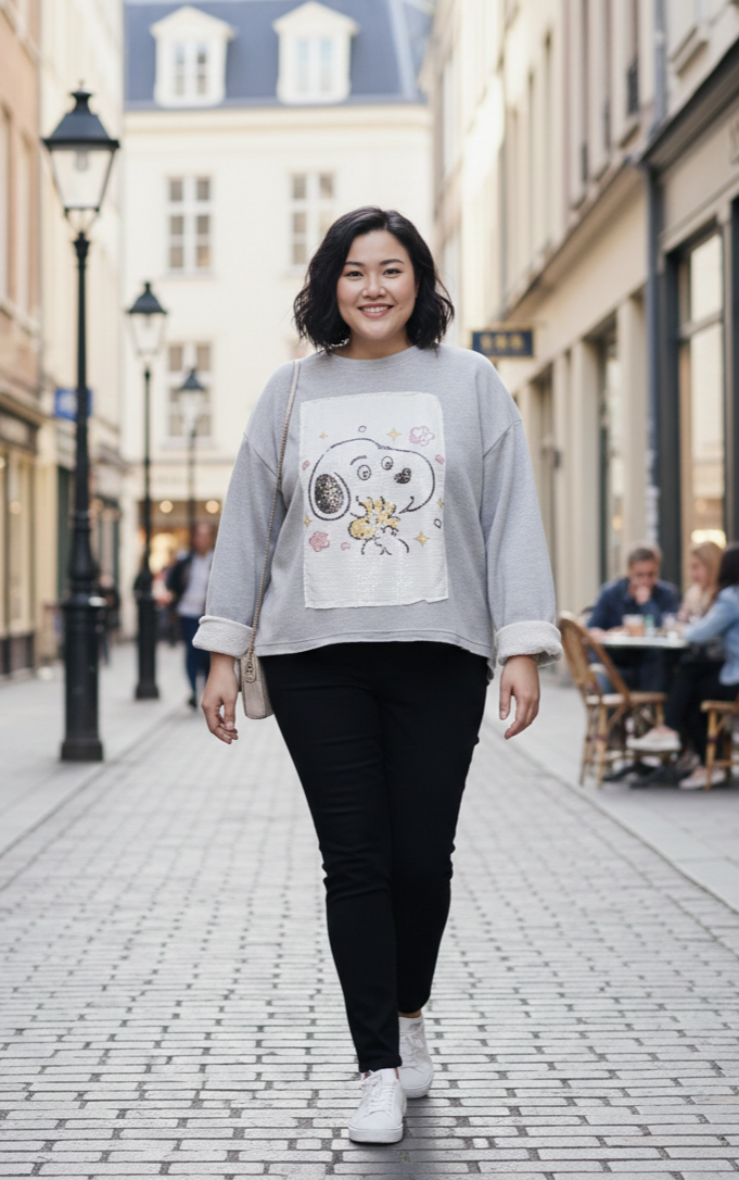 Sudadera de felpa primaveral en color gris con ligero toque plata.