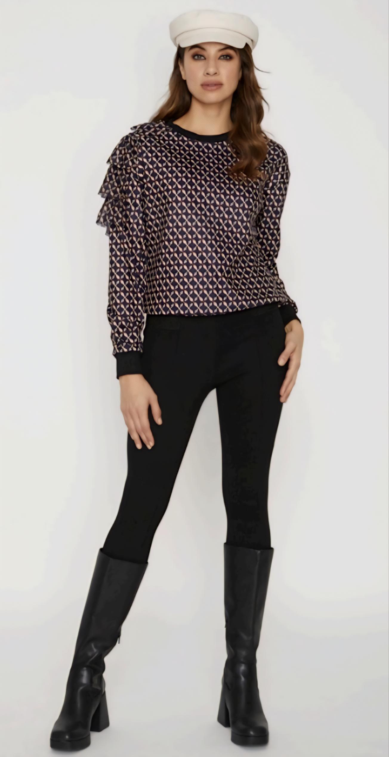 Sudadera estampada y volantes.
