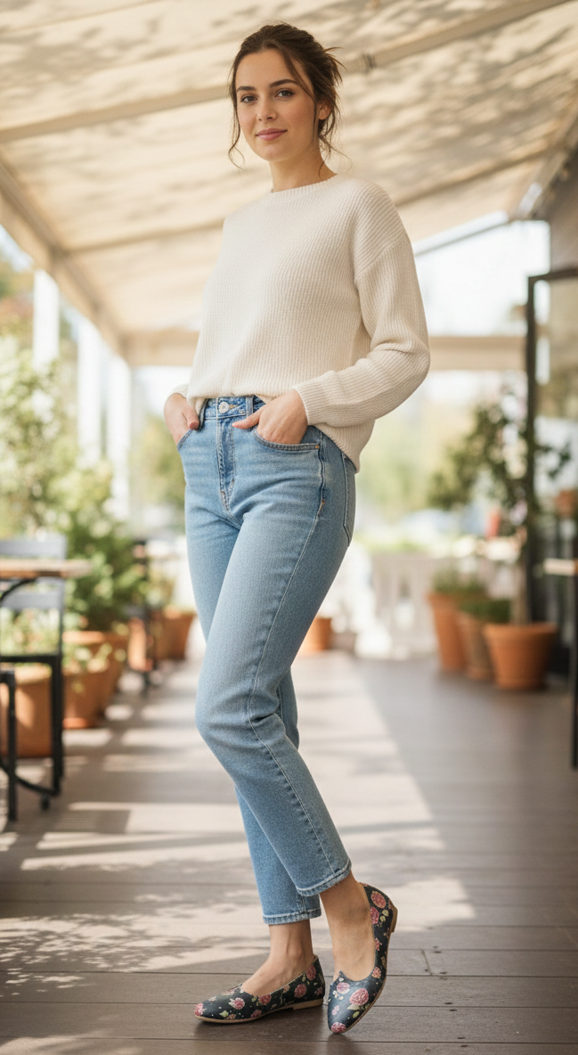 Manoletina de piel estampada.