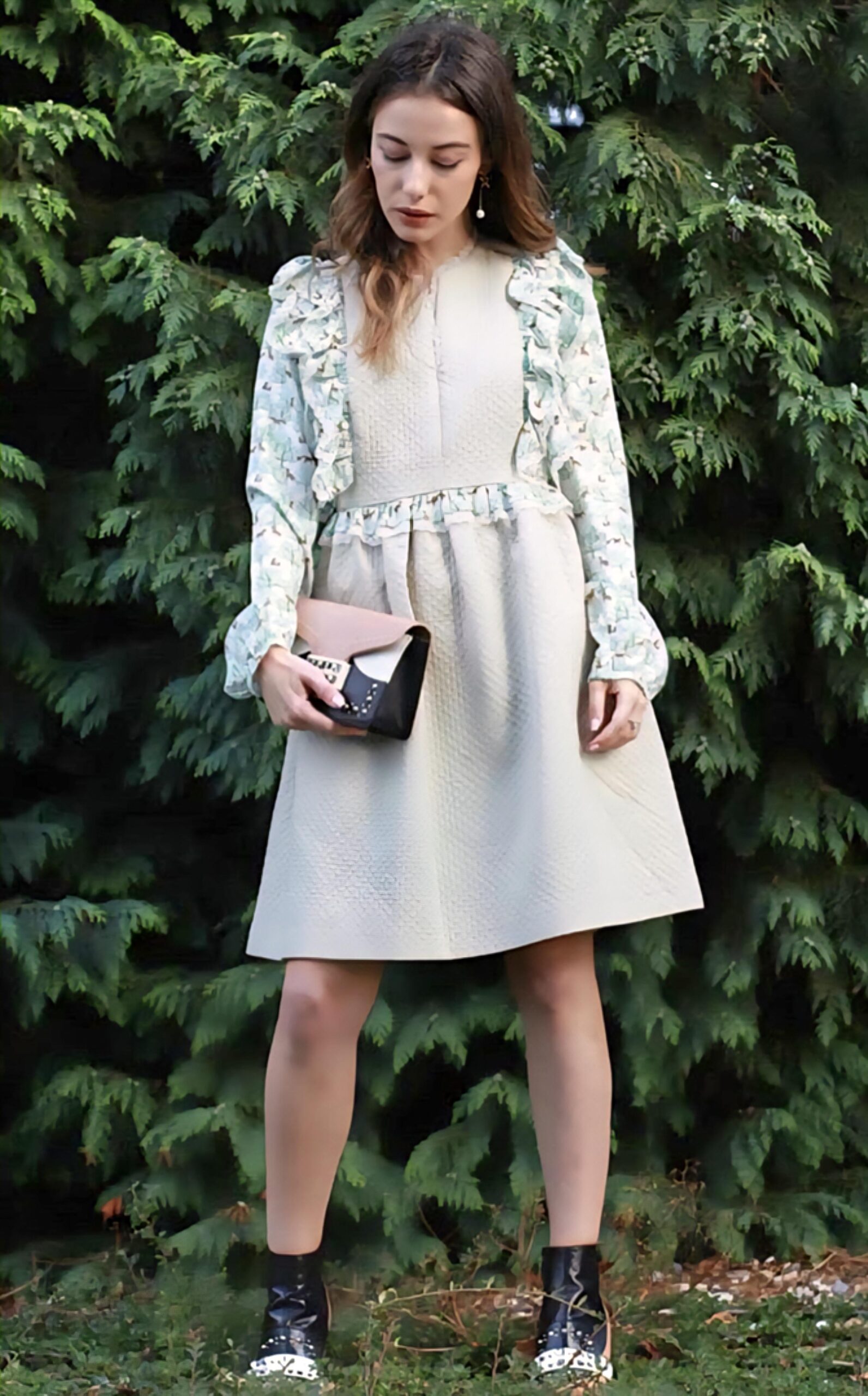 Mangas y volantes decorativos en tejido estampado.