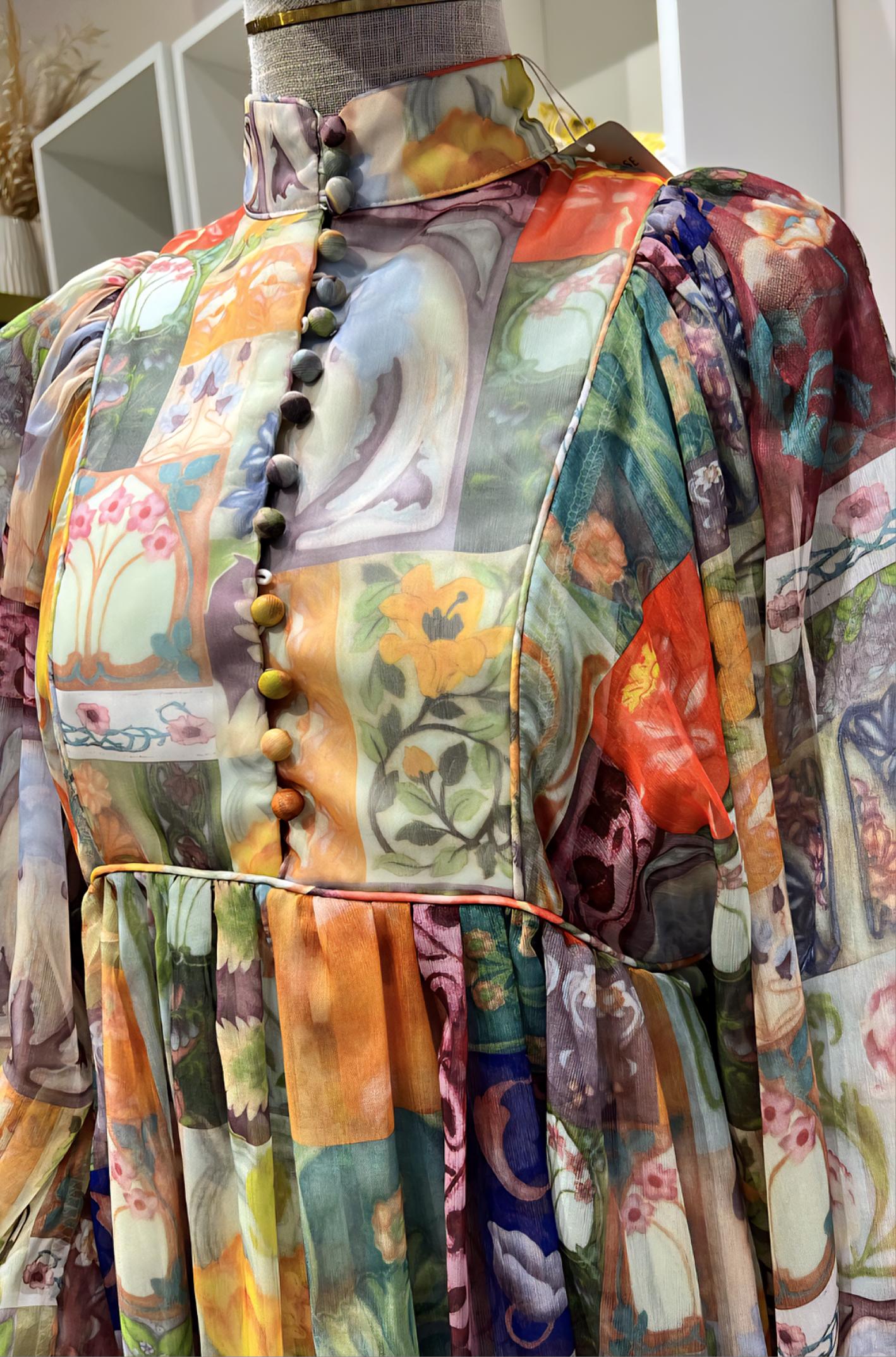 Cuello mao y abertura delantera con botones forrados.