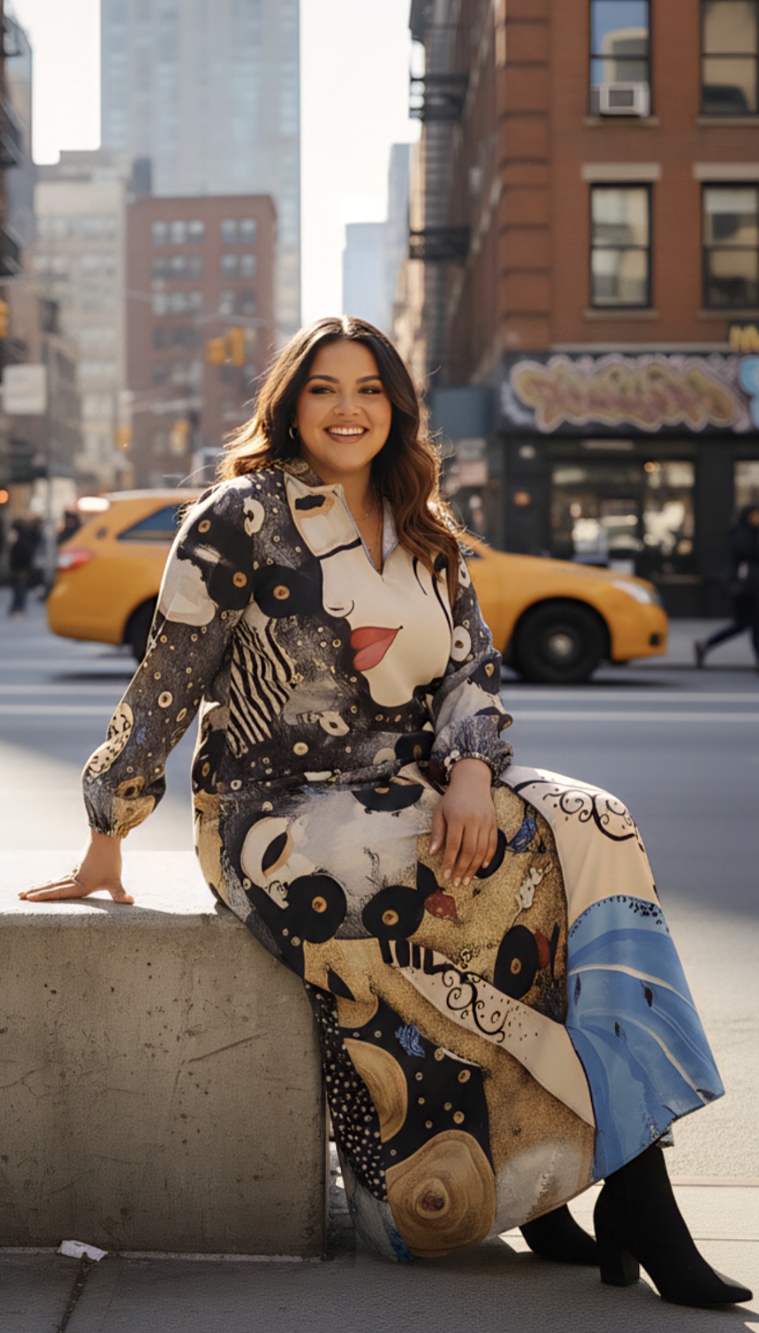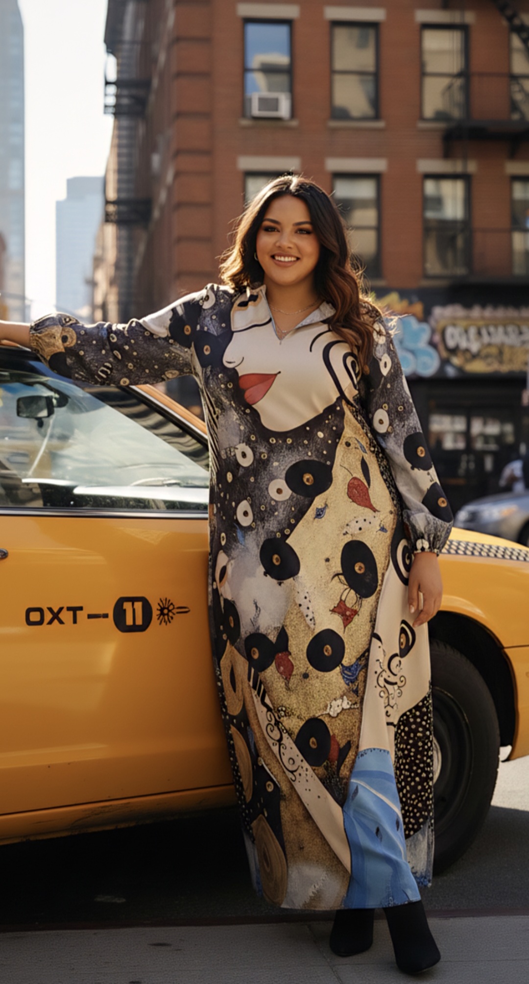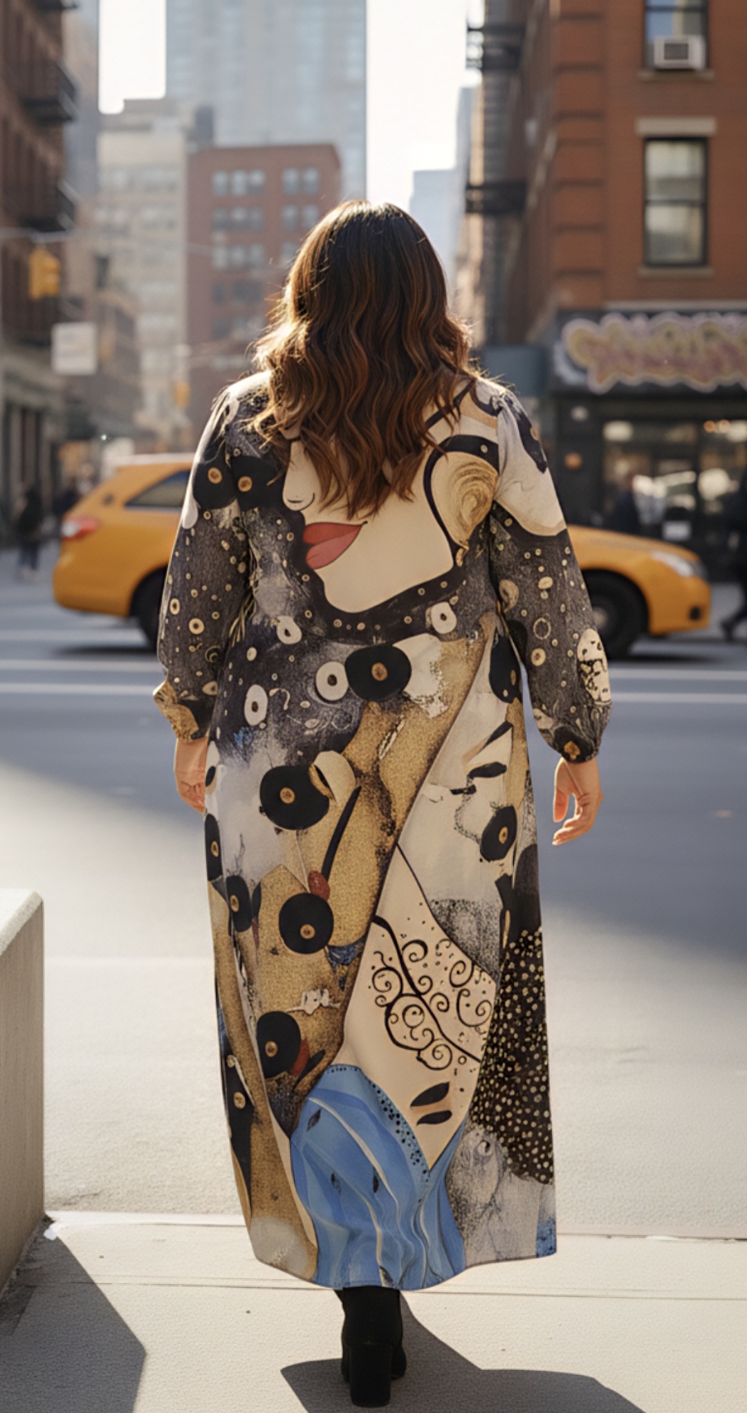 Vestido largo satinado estampado.