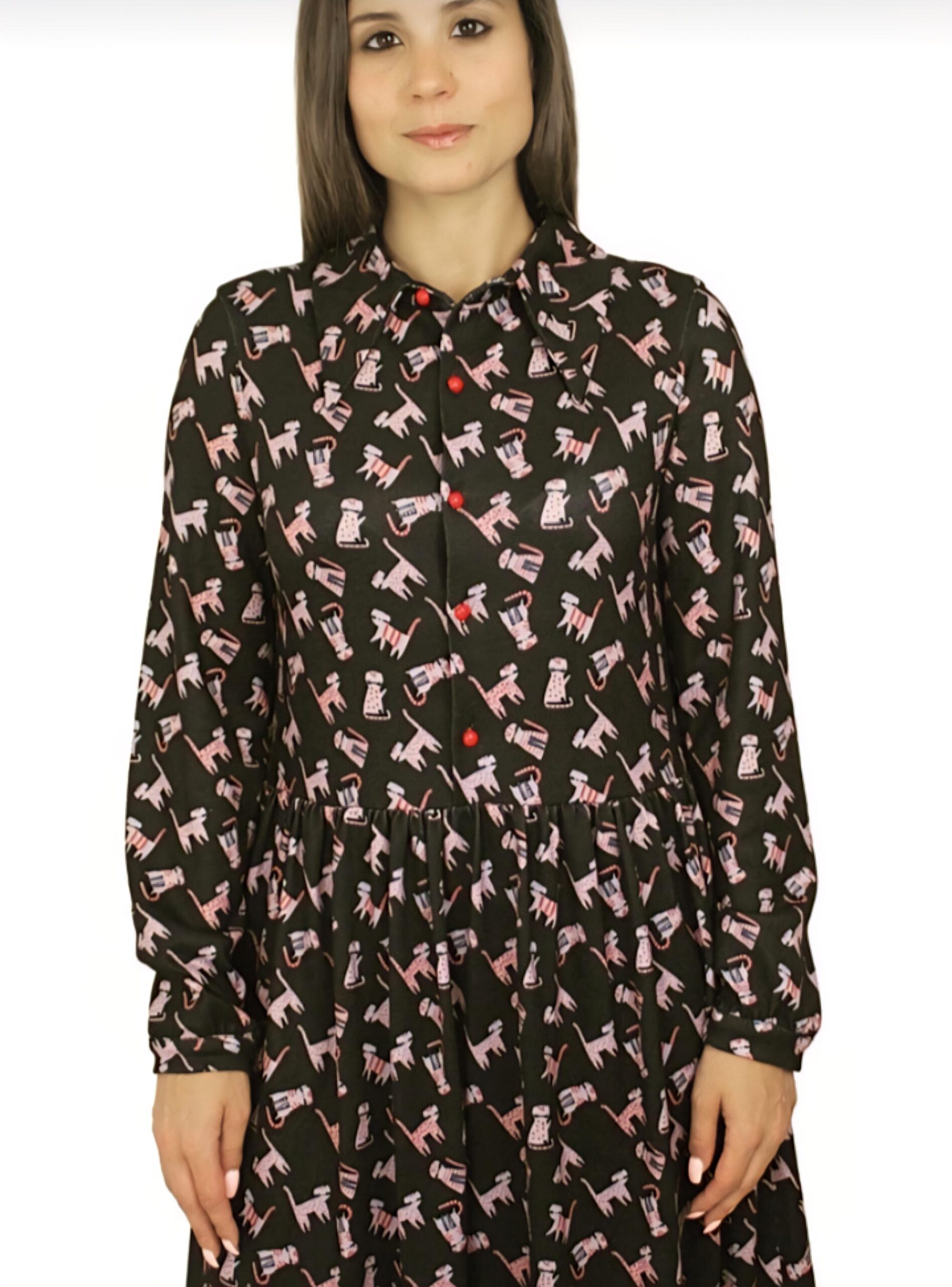 Abotonadura desde cuello hasta cintura con botones color rojo.