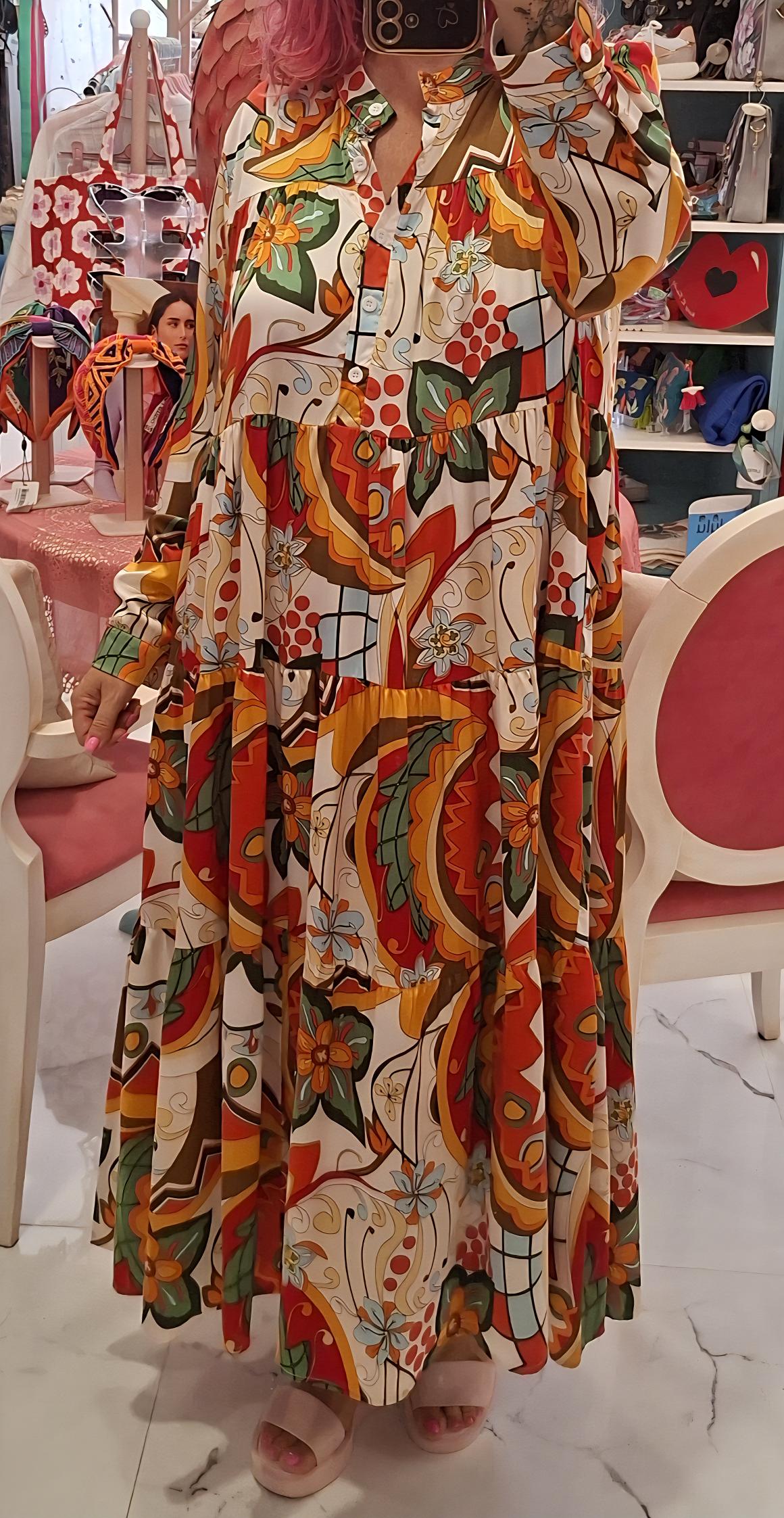Vestido largo en tejido satinado con muchísima caída.