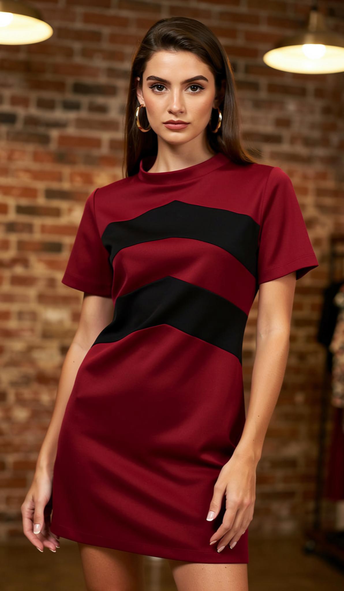 Tejido de neopreno burdeos con franjas delanteras en negro.
