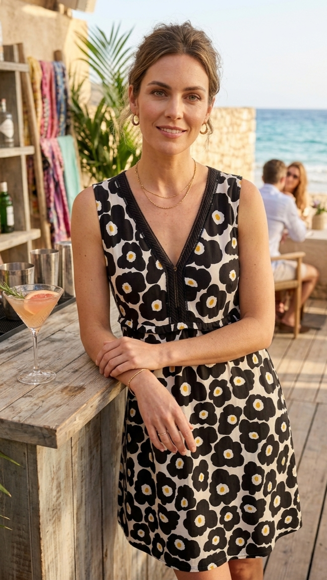 Vestido babydoll en color blanco y negro.