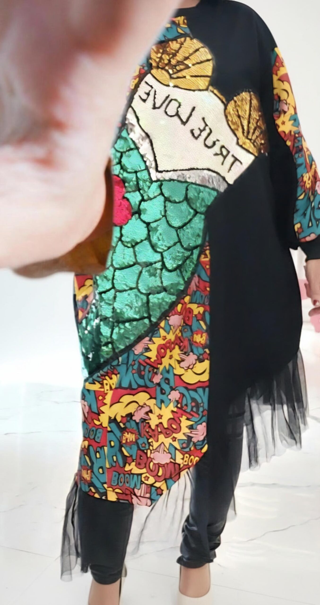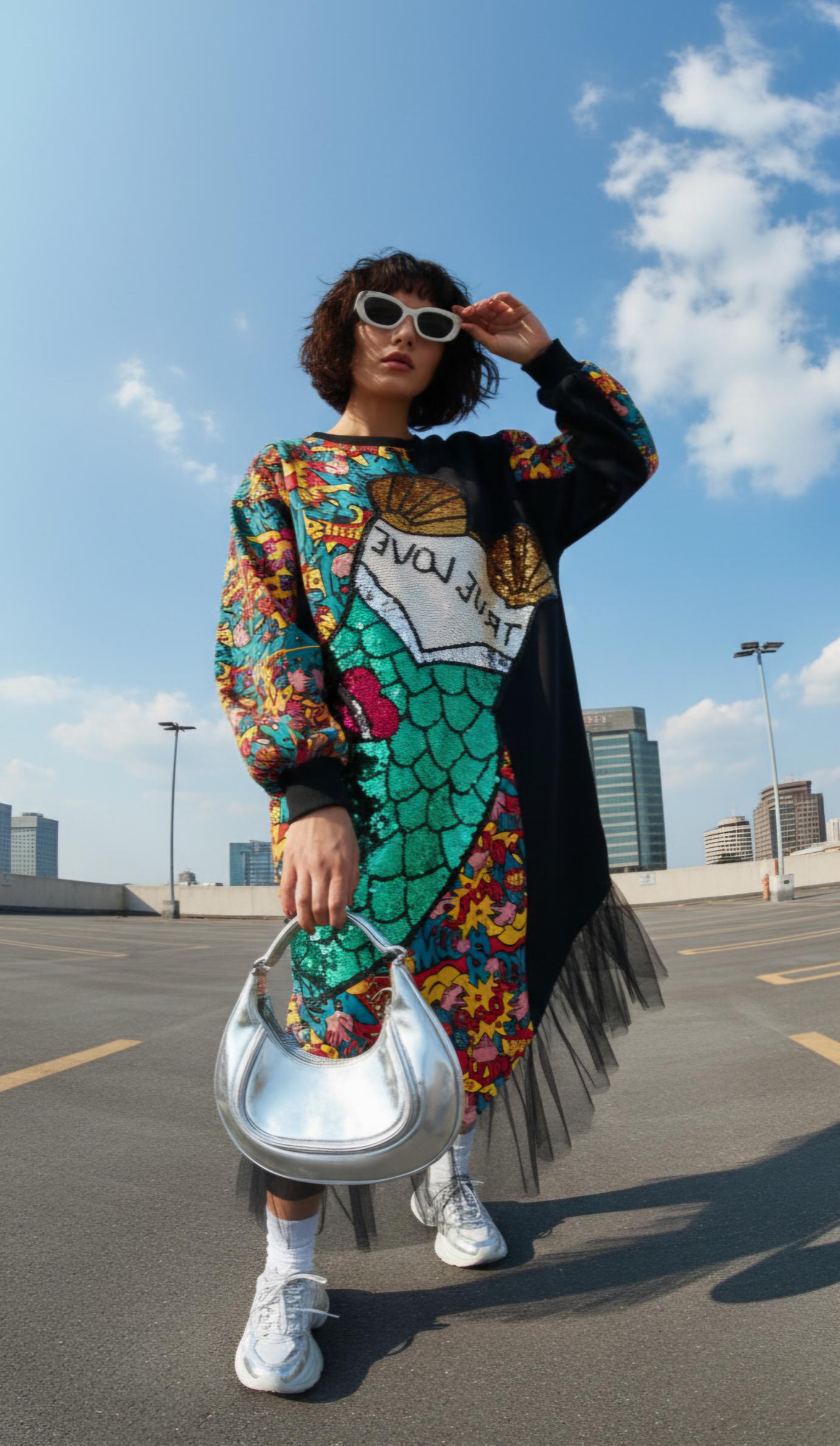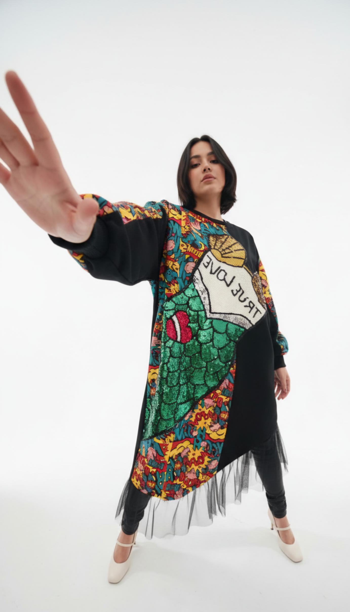 Vestido en tejido de sudadera sin pelo interior en color negro.