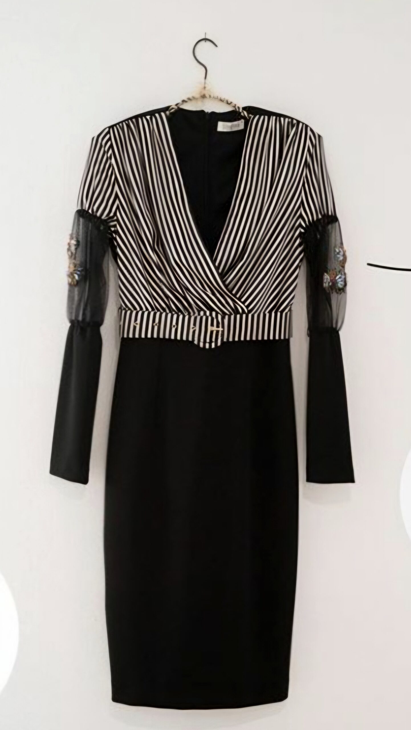 Cuerpo en tejido seda mil rayas blanco y negro.