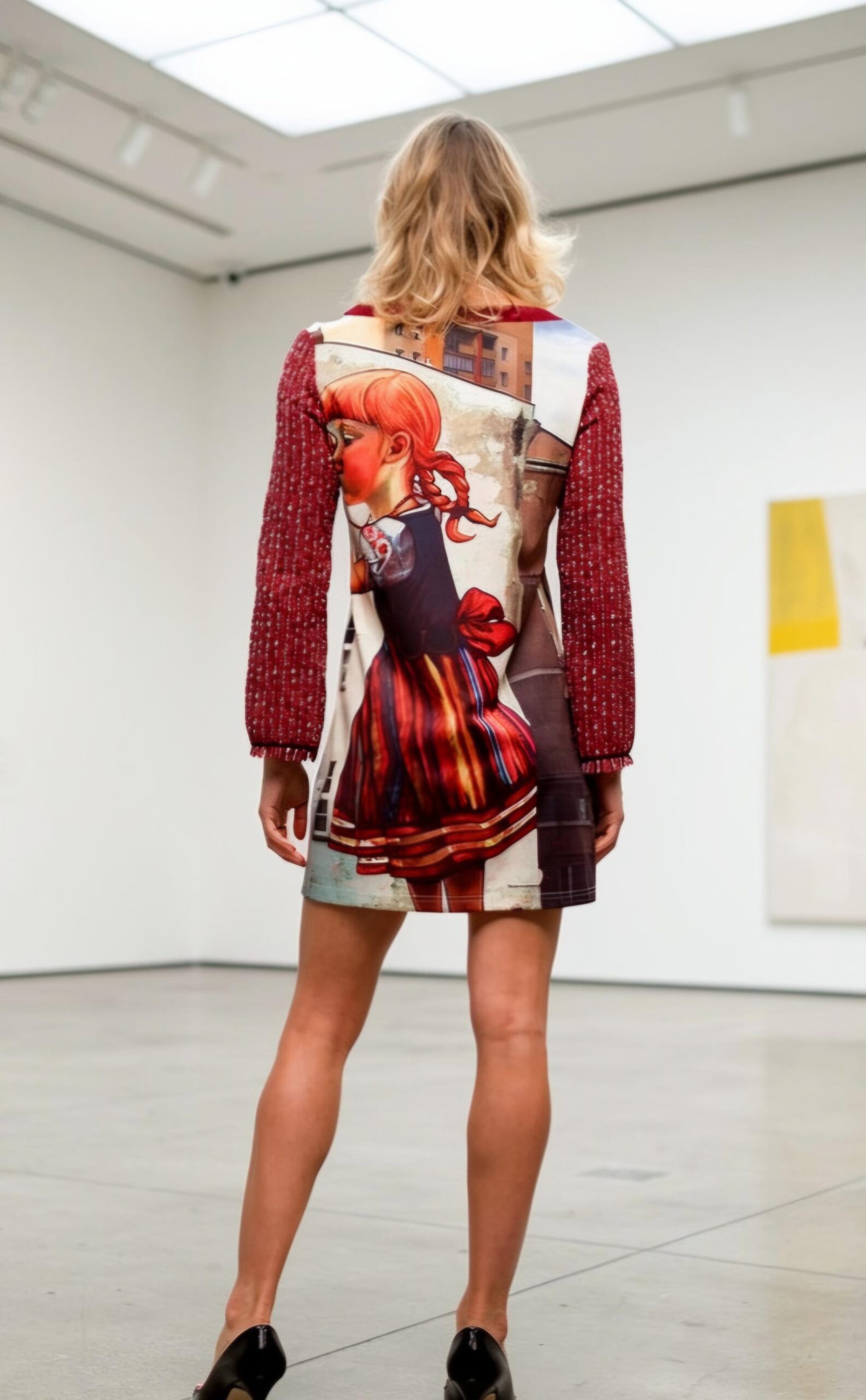 Vestido mini con estampación de niña regando.