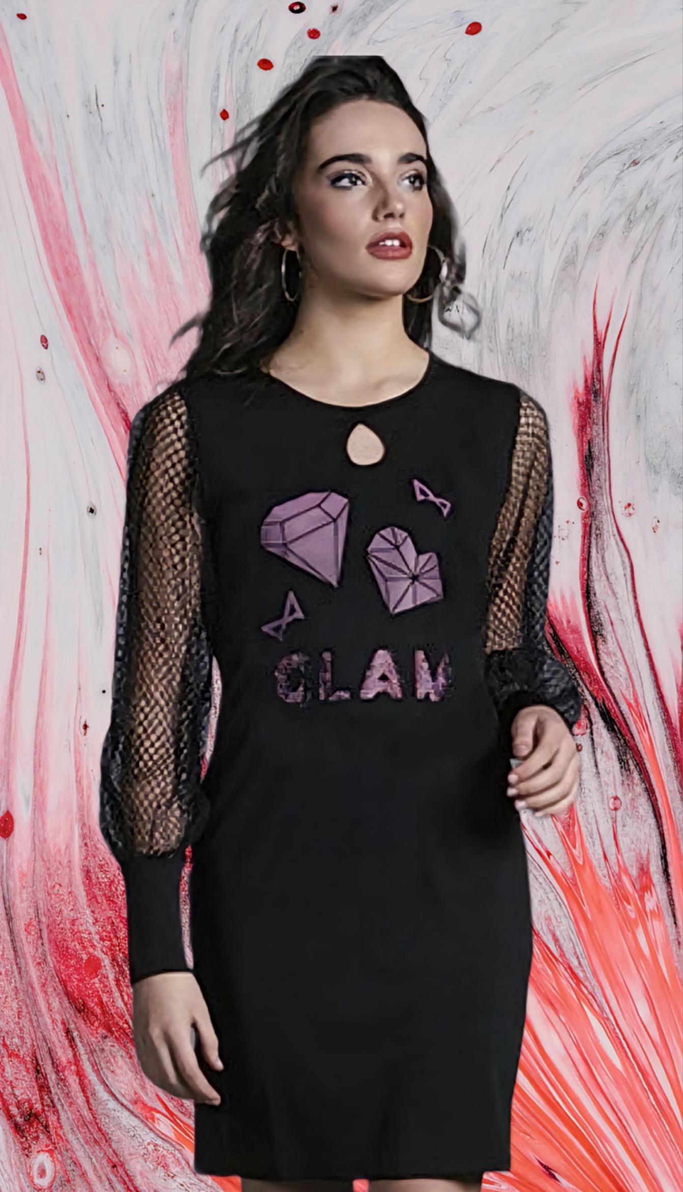 Estampación delantera de diamantes y letras Glam en strass rosa.