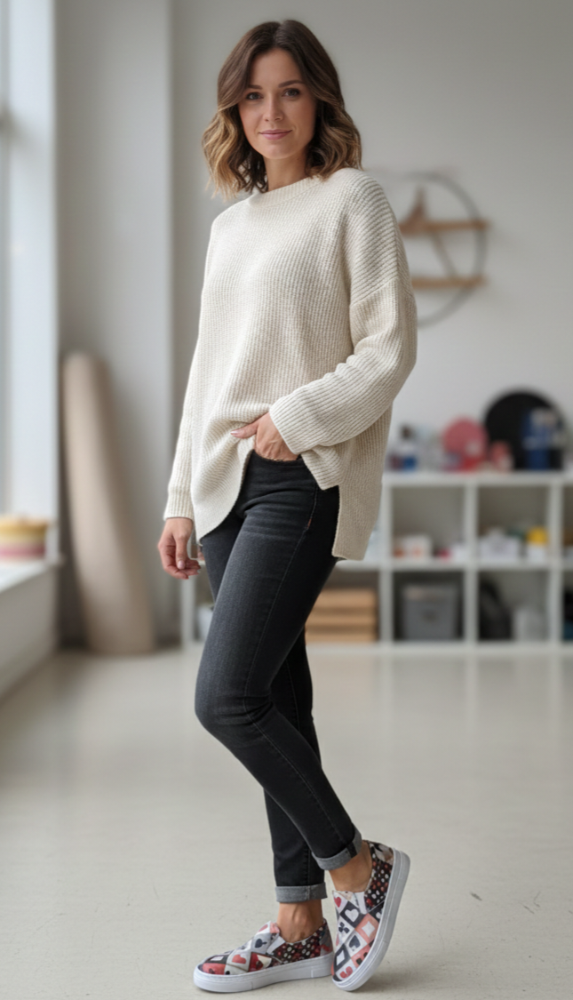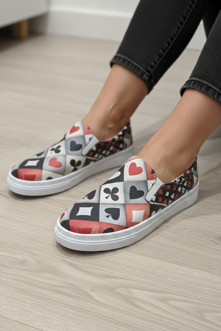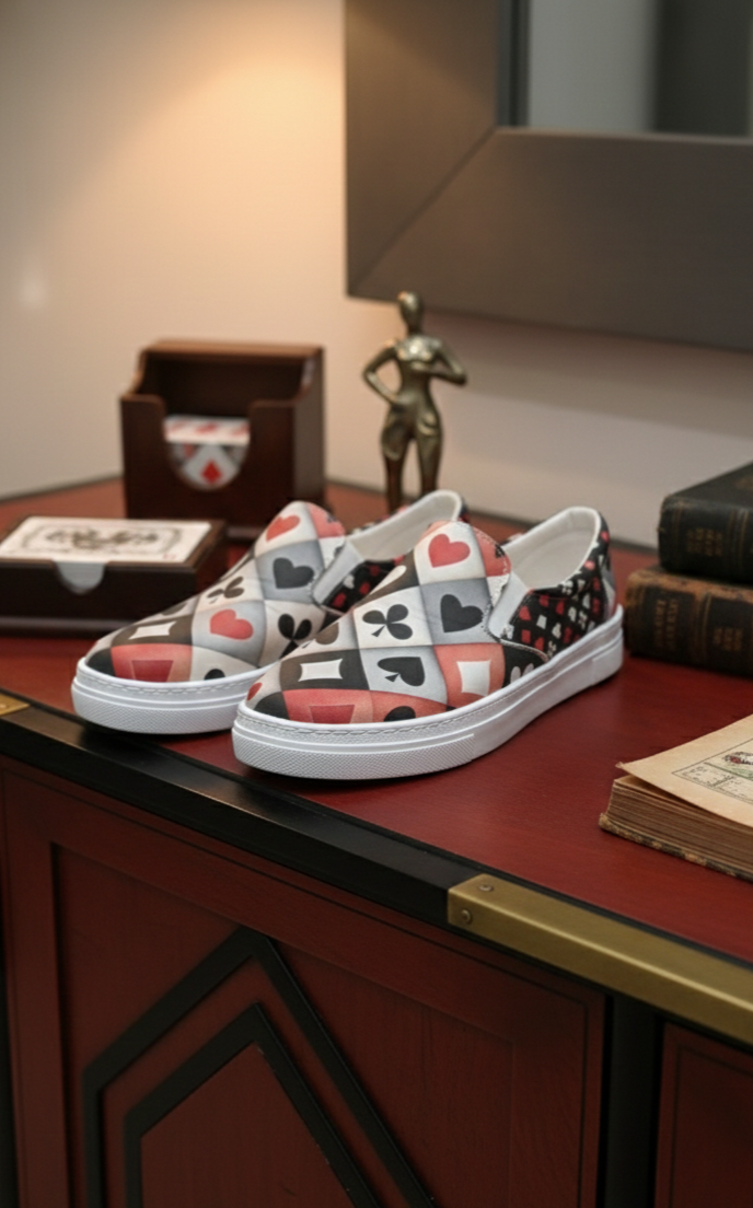 Zapatilla de piel estampada.