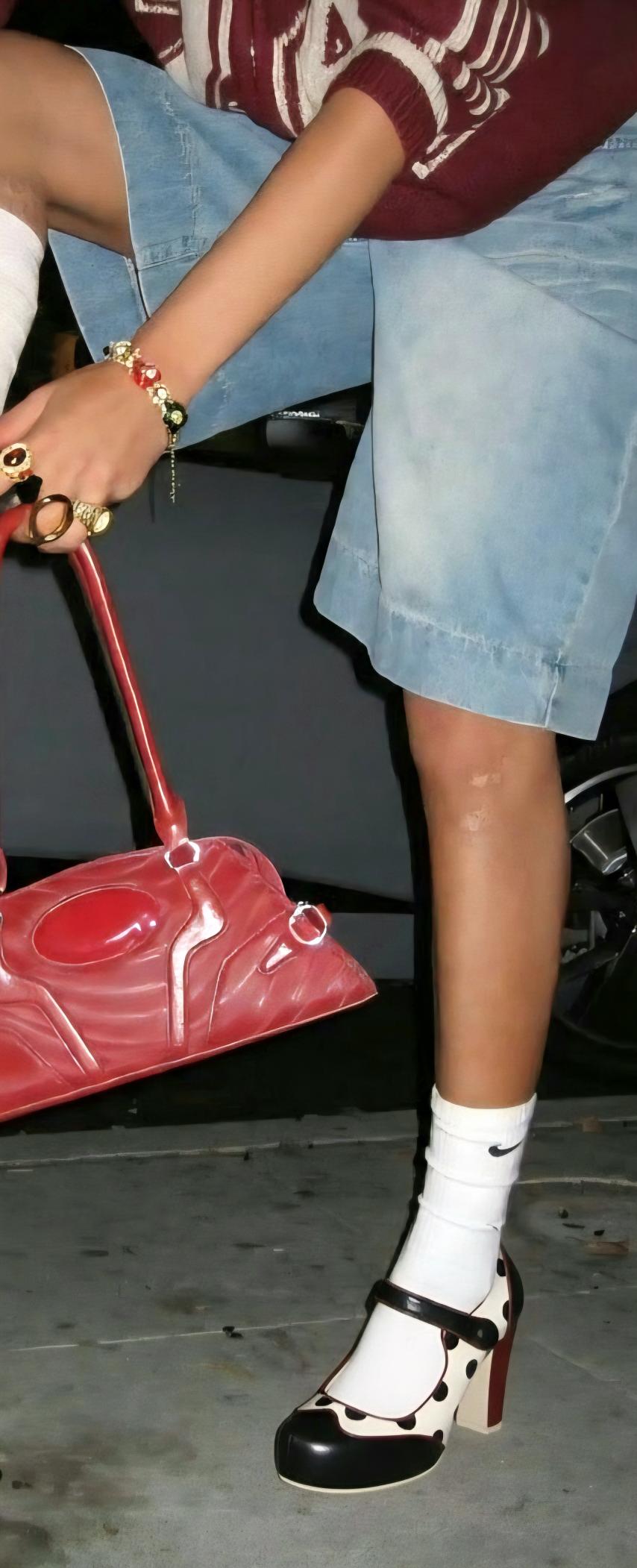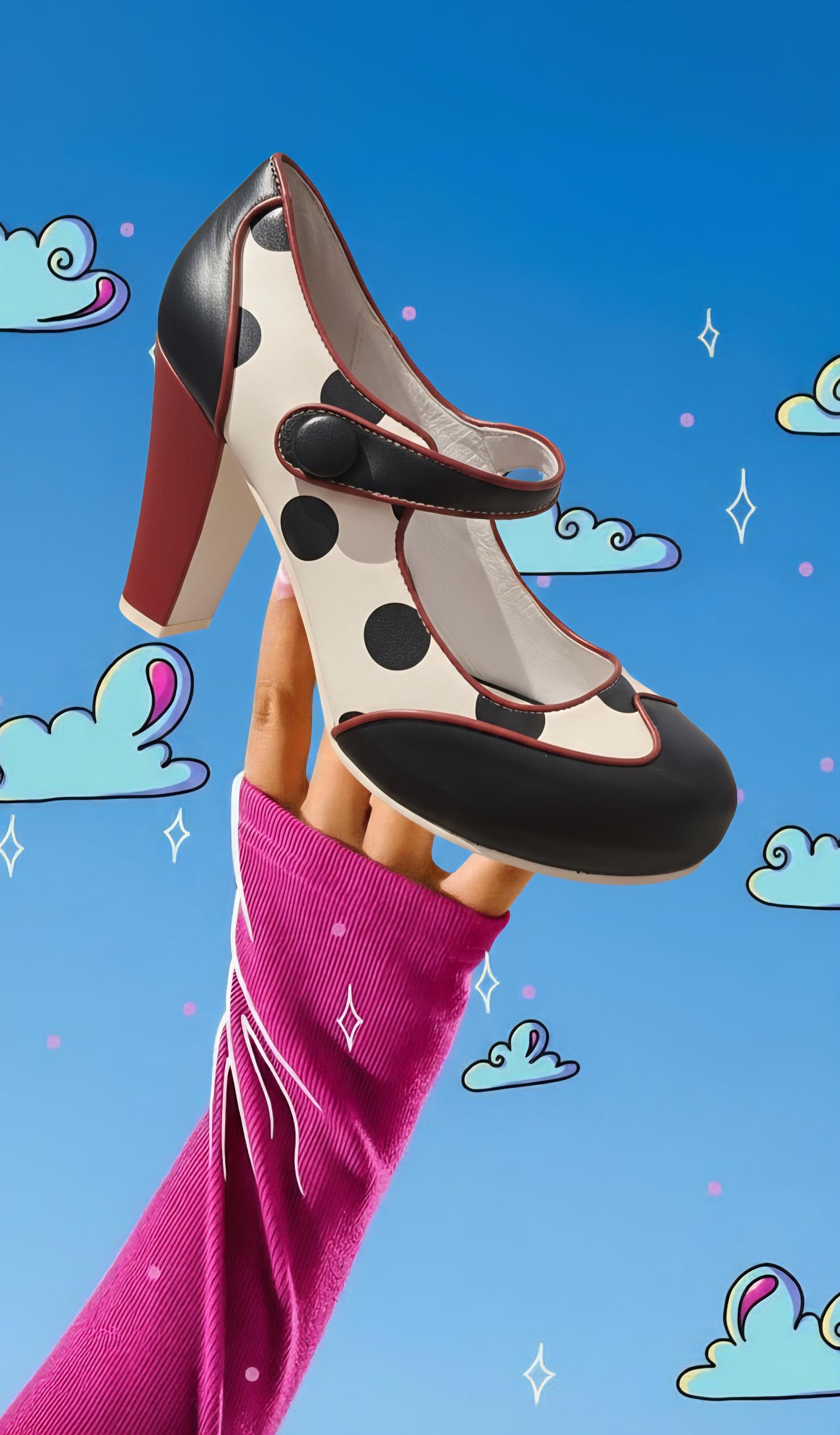 Zapato todo piel combinado en colores negro, rojo y beige.