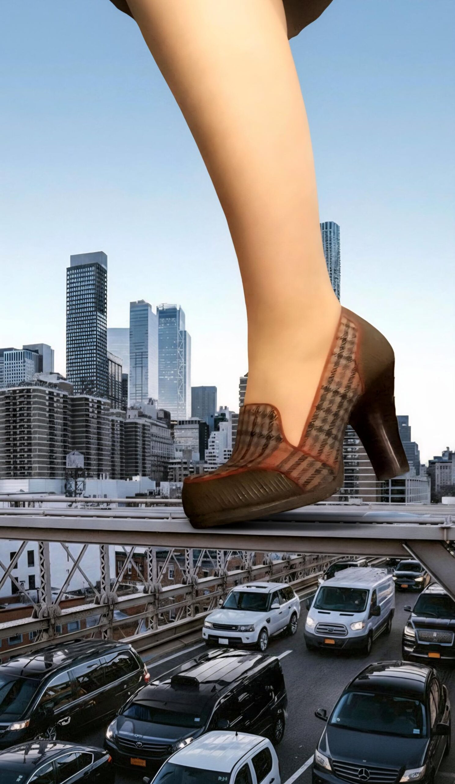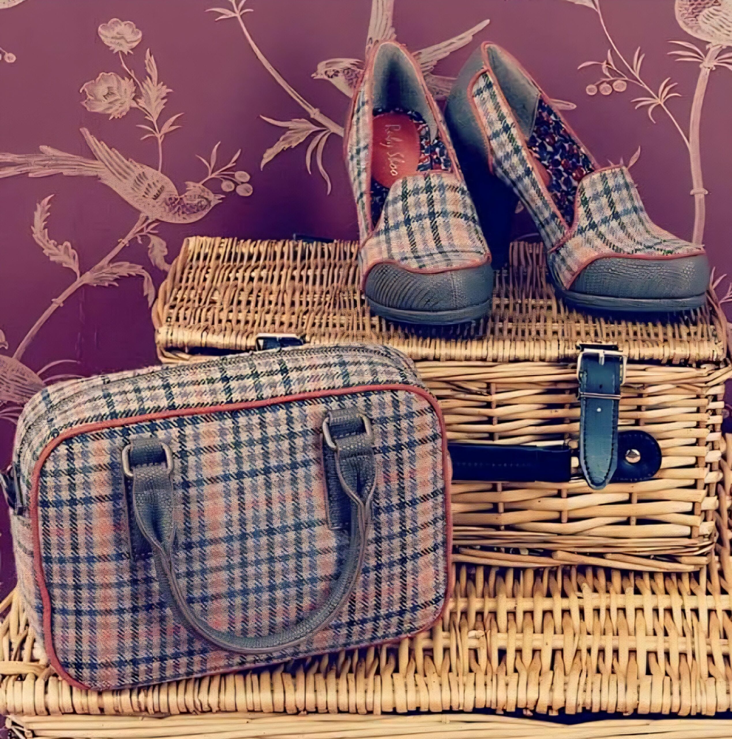 Entelado a cuadros multicolor con puntera y talonera en polipiel gris.